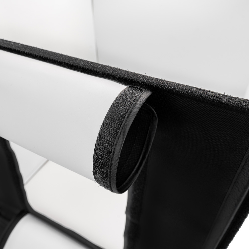 Ez a kompakt és masszív hordozótok néhány pillanat alatt professzionális mini fotóstúdióvá alakítható. Négy háttérrel, diffúzorvászonnal és szabályozható LED-világítással ellátott, tökéletes termékfotókhoz és akár helyszíni munkához is. A LED színhőmérsékletét 3300-5600K között lehet beállítani. A méret ideális kis tárgyakhoz és extra hordozhatóságot biztosít. A táska hátuljának kinyitásával és az oldalak kihajtásával pillanatok alatt stúdióvá alakítható. A falak helyzete tépőzárral rögzíthető. A háttér tépőzárral is gyorsan rögzíthető. A fehér, fekete, szürke vagy narancssárga háttérrel azonnal megteremtheted a kívánt hangulatot. Ráadásul ezek a színek könnyen használhatók háttérként olyan témákhoz, amelyeket le kell választani. A LED-ek fényerejét és színhőmérsékletét a hálózati adapteren található forgatógombbal szabályozhatod.